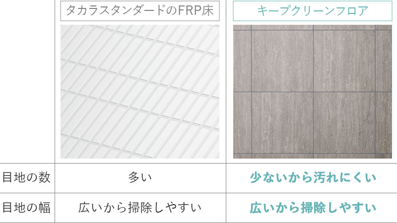 タカラスタンダードのグランスパが標準採用する『キープクリーンフロア』は、このFRPの弱点を克服するために、「磁器タイル」を採用しました。この床がもたらす、耐久性と快適性について解説します。
