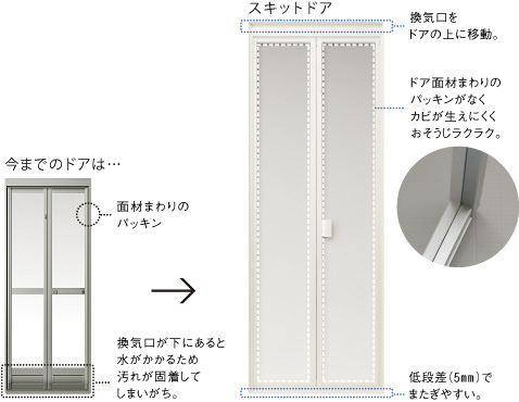 1. 【ドア】パッキンレスでカビ知らず:「スキットドア」