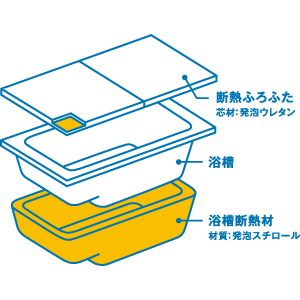 浴槽全体を断熱材で包み込む「W断熱構造」