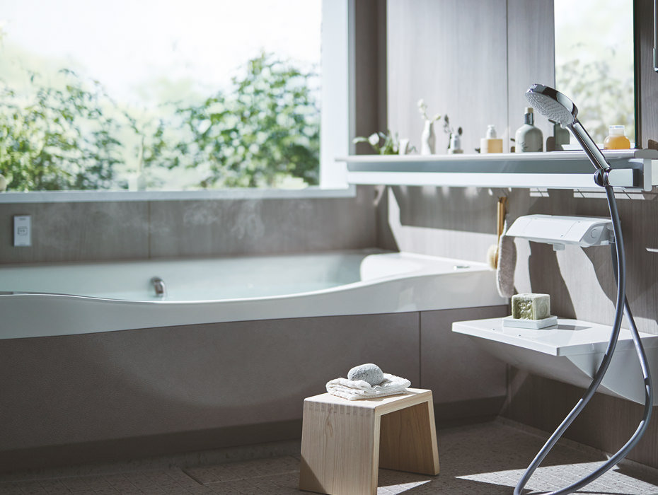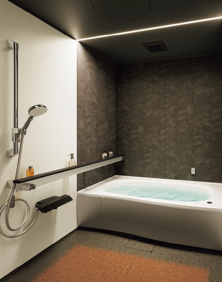 - 安全性: フラットな形状の手すりなど、高齢の方や小さなお子様がいるご家庭にも配慮したユニバーサルデザインを採用し、安心して入浴できる環境を整えます。