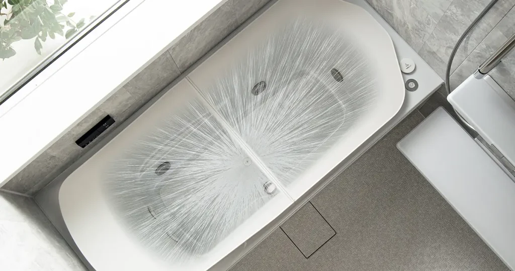 浴槽に浸かるだけでなく、水流の刺激で血行を促進し、体の芯から温まる**「温浴効果」を最大化**。湯に身を預けるだけで、自宅にいながら温泉のような贅沢なひとときを味わえます。
